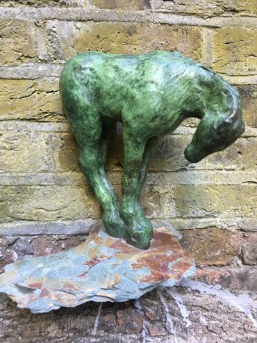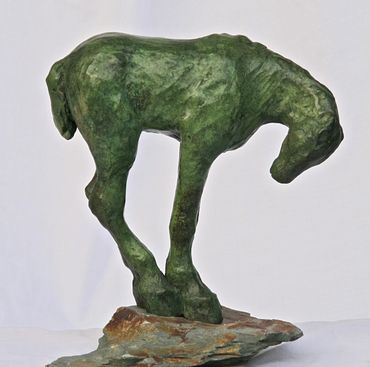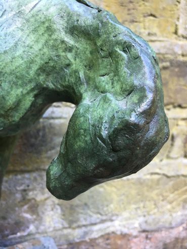 The very first sculpture to bring my inner life to the outside. Doesn’t he make you cry? There is a quiet grace to the bend in his little neck while he is very carefully peering into the abyss. Can he make it, are his little legs strong enough to carry him over? He just is not sure at all, not sure at all. It is clear though that there is no choice, he has got to go for it. What happened? Look at the other 6 in the series…
