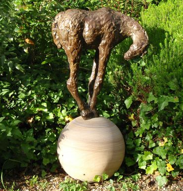 Bronze, edition of 9, on Indian rainbow stone ball, Purbeck stone or granite