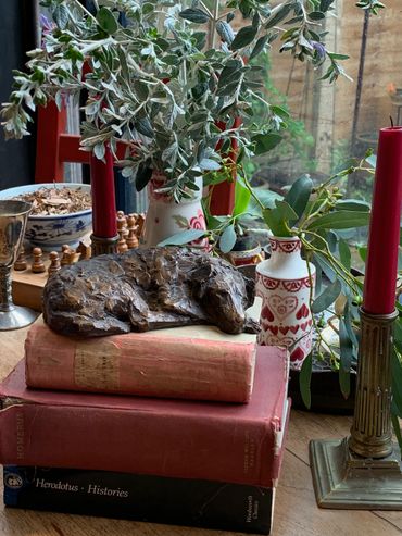 This small, insignificant dog pictured is actually my Chesapeake Bay bitch Gummi, who was not insignificant or sweet and sleepy and should have been called ‘Toothy’. Fierce with a positively lousy attitude to work she kept me and one flock of sheep in Wales, on our toes. With Gummi never a dull moment, now forever asleep on a shelf in my study; you were a dear and loyal friend if somewhat unpredictable